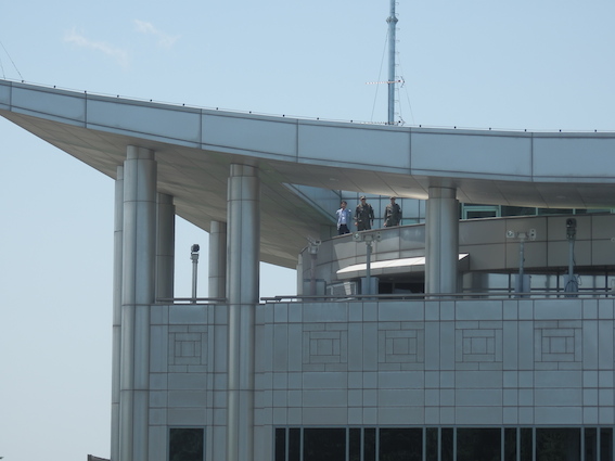 軍事休戦委員会のある建物の向こうは韓国軍の駐在する建物があり、韓国軍の軍人の姿が見えます。