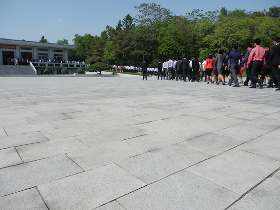 まずは、この「万景台革命事績館」の前にある巨大な広場に整列、頭を下げて冥福をお祈りします。