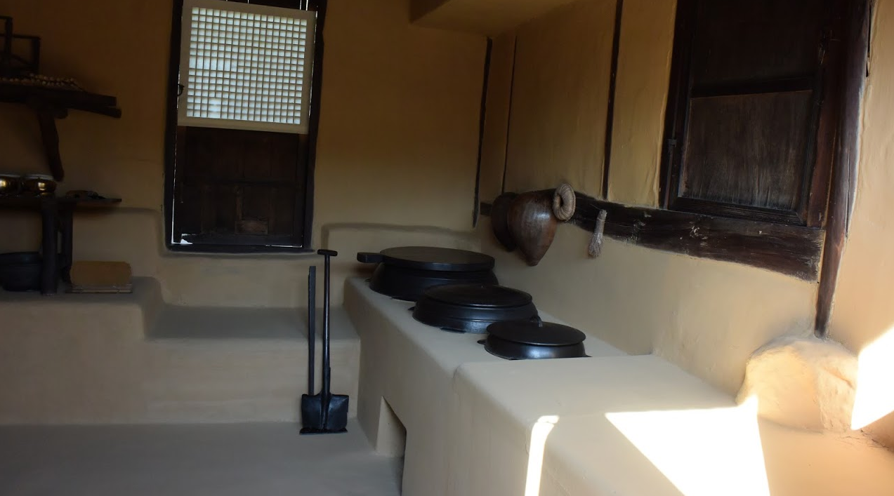 中が見学できるようになっていて、当時、金日成の両親が使っていた農具が紹介されています。
