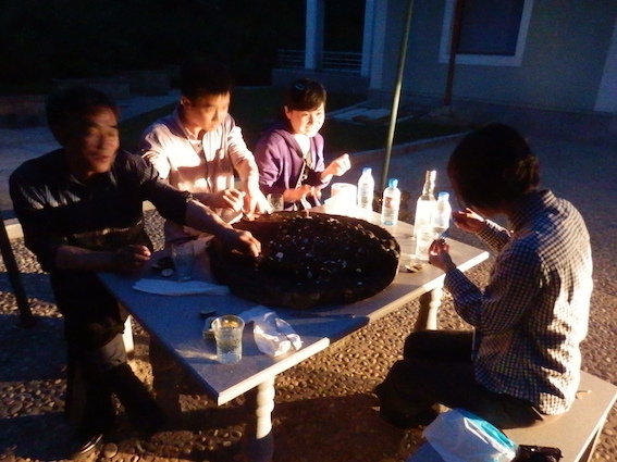 25度くらいのそんなに強くない焼酎ですが、私たちについた北朝鮮人の現地ガイドは水割りとかはしない派なので、みんなでストレートで飲みます。