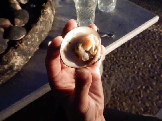 ここの名物料理が蛤(ハマグリ)のガソリン焼きです。