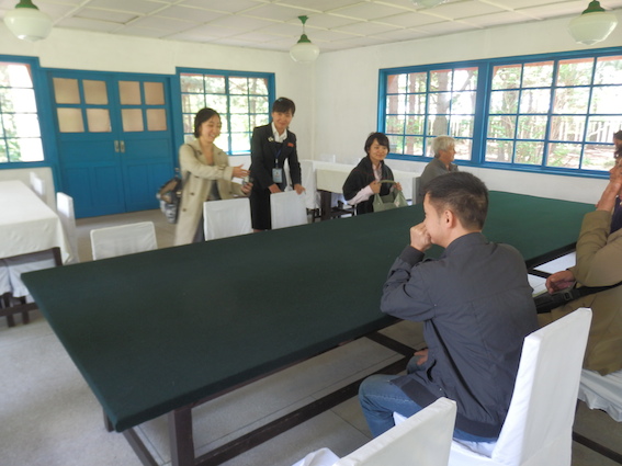 ここの建物の真ん中に軍事境界線が横切っており、手前が北朝鮮、向こうが韓国になっているので、この建物の中であれば、国境を越えることができます。