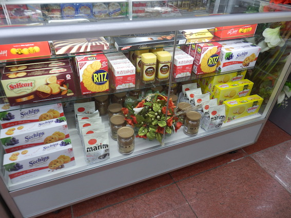 北朝鮮のホテルの売店には、お土産のキーホルダー、チマチョゴリ(北朝鮮・韓国の民族衣装)、置物などの他に、普通に市民が買い物をするような食材などが売っています。