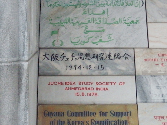 主体思想塔の1階には、世界各国の主体思想を信奉する団体から贈られた石碑があります。
